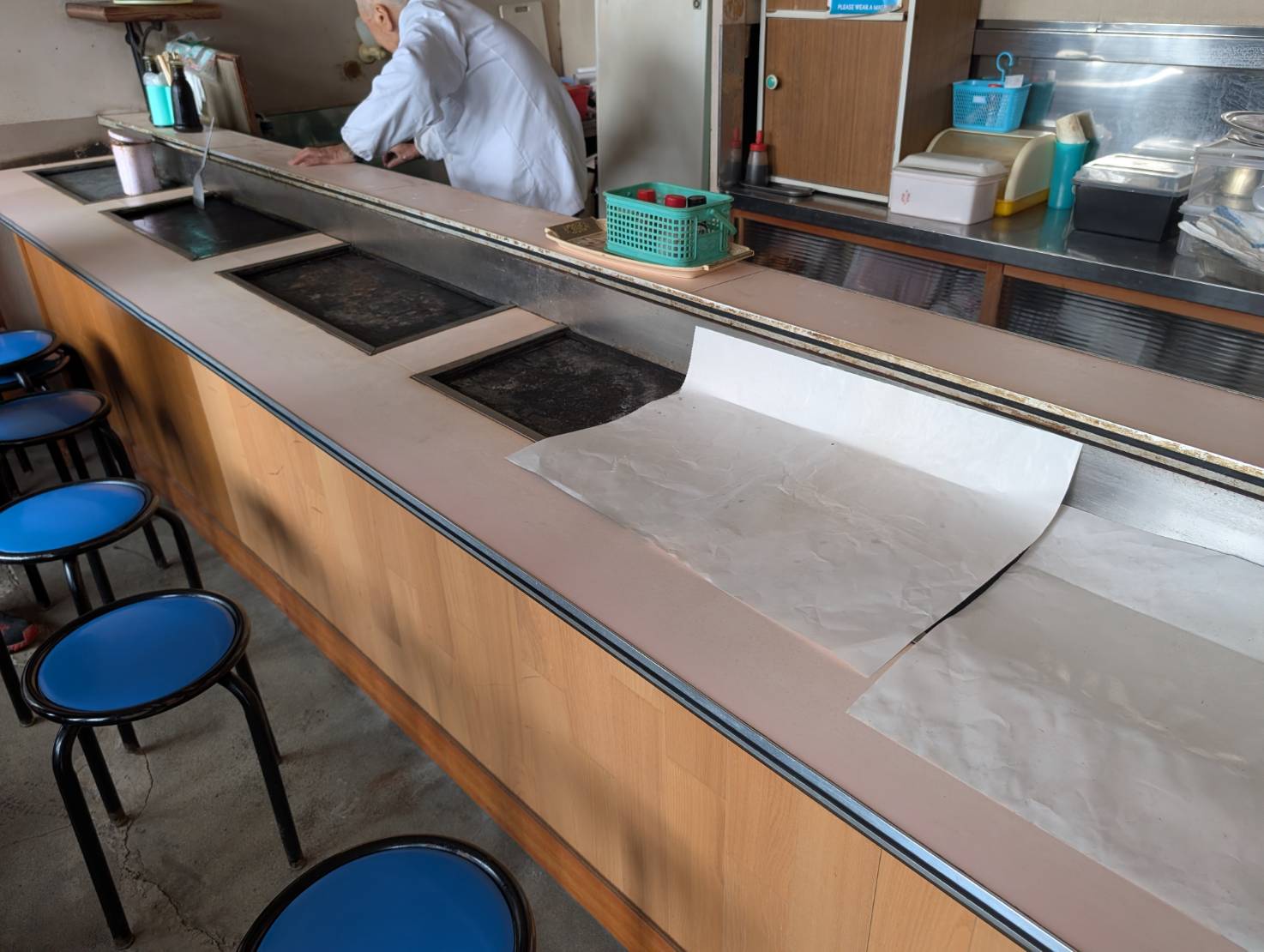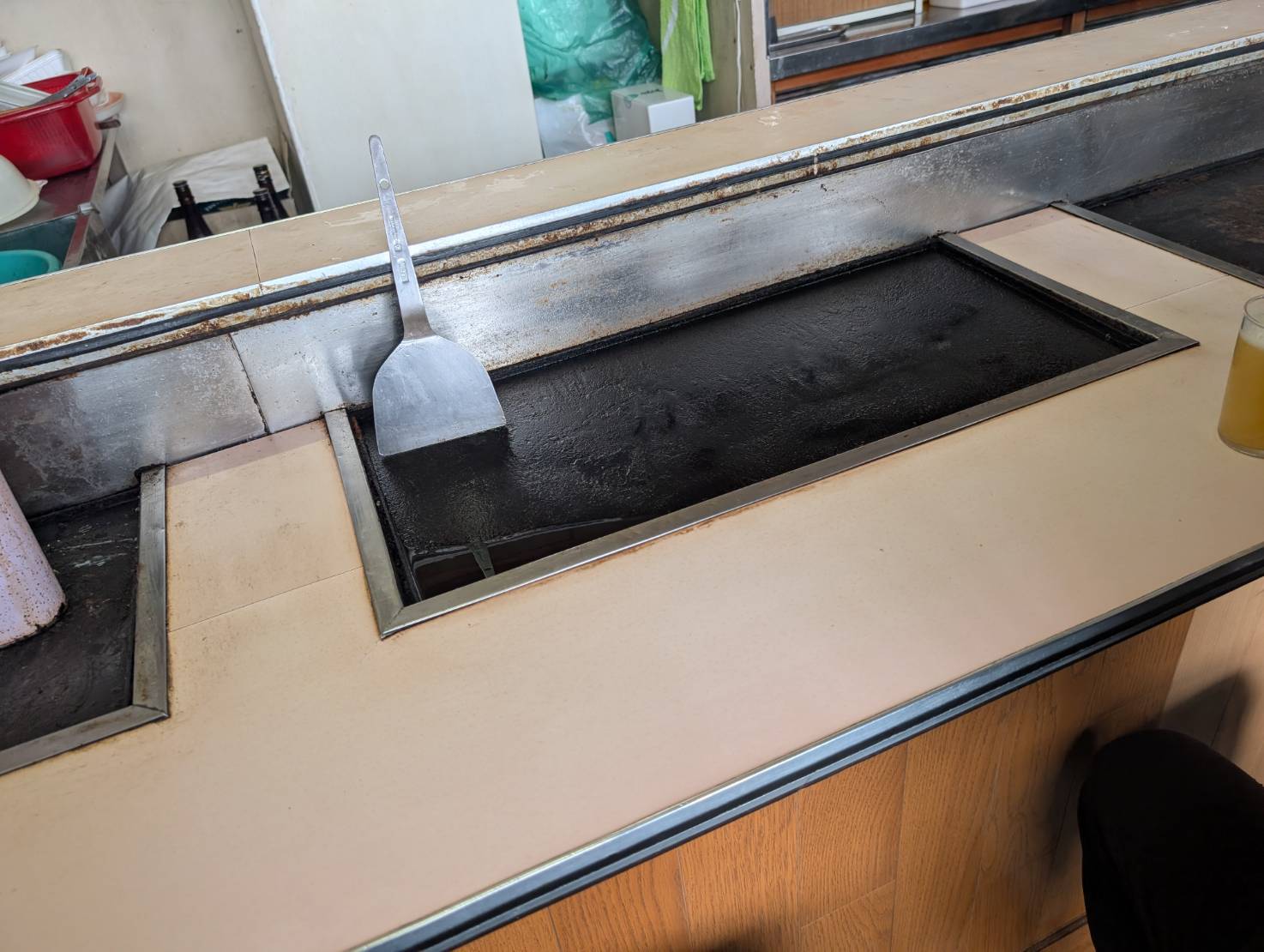 カウンター席が6席くらいあり、各席には鉄板が埋め込まれてあります。
