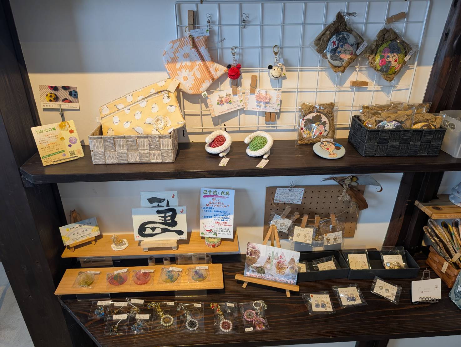 棚には、小物販売コーナーが。うま年にちなみなのか逆さ馬が書かれた置物も。