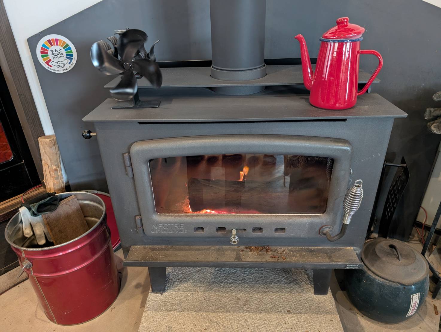 ほっこり暖かな薪ストーブがお迎えしてくれます。