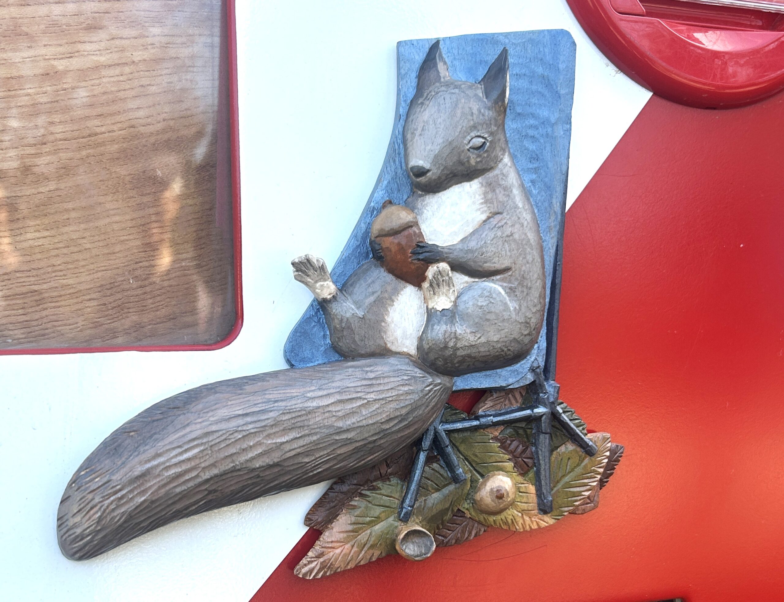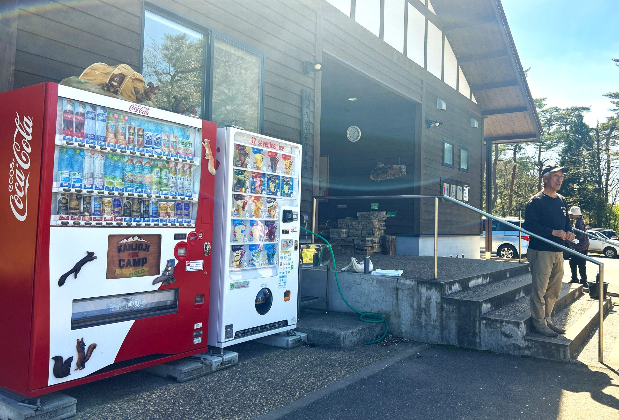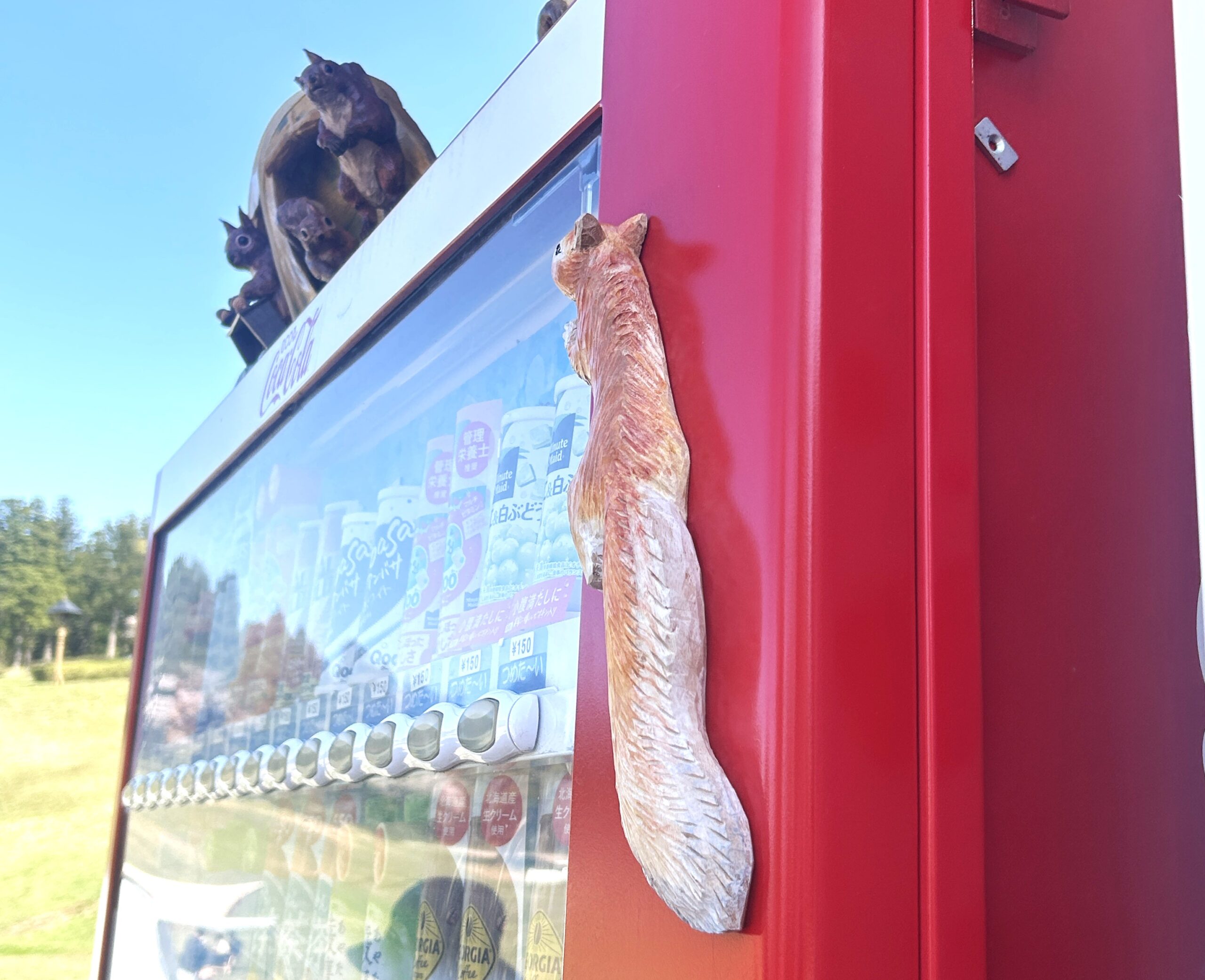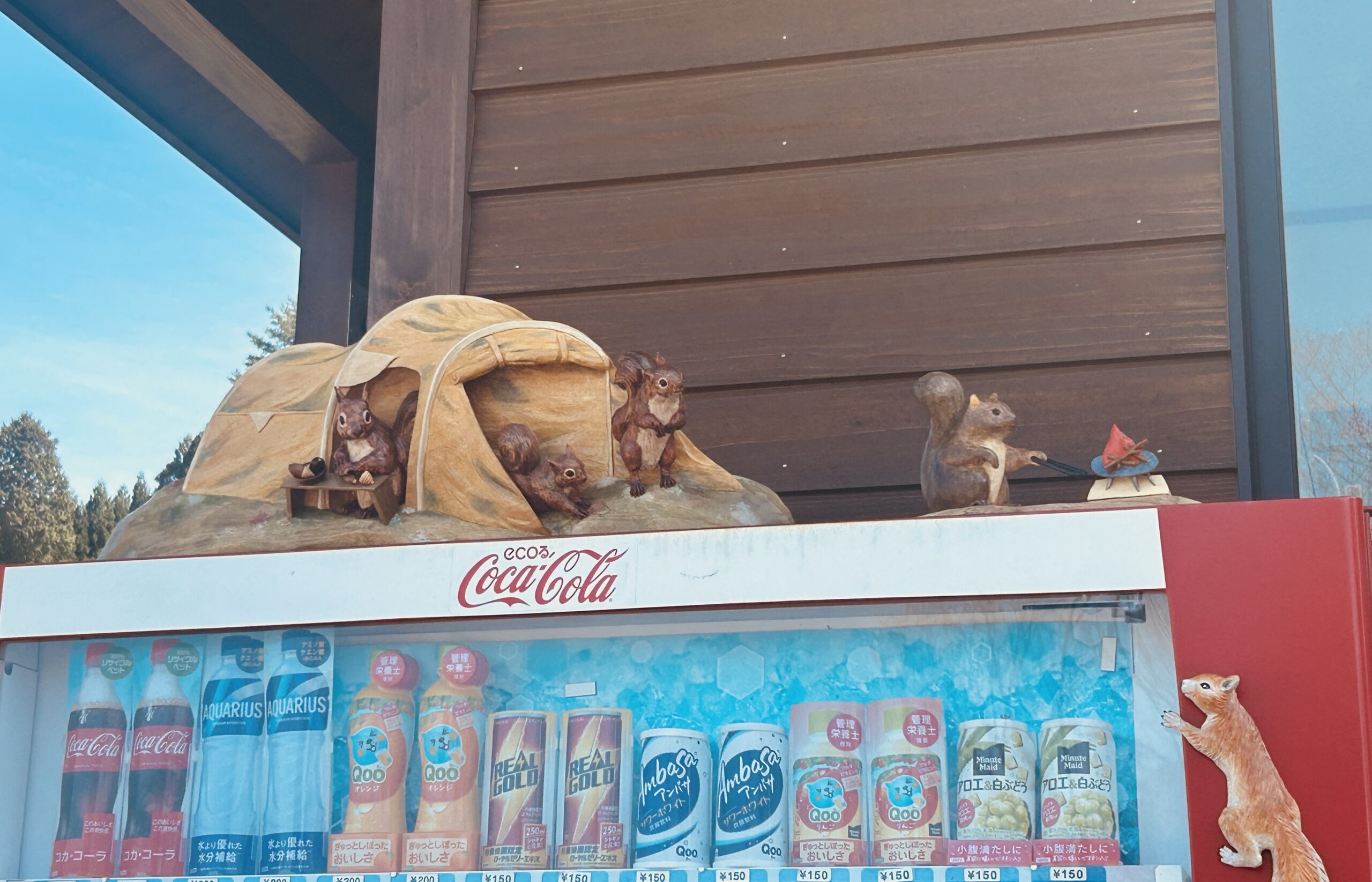自販機の上には「リスのキャンプと、リスのBBQ」