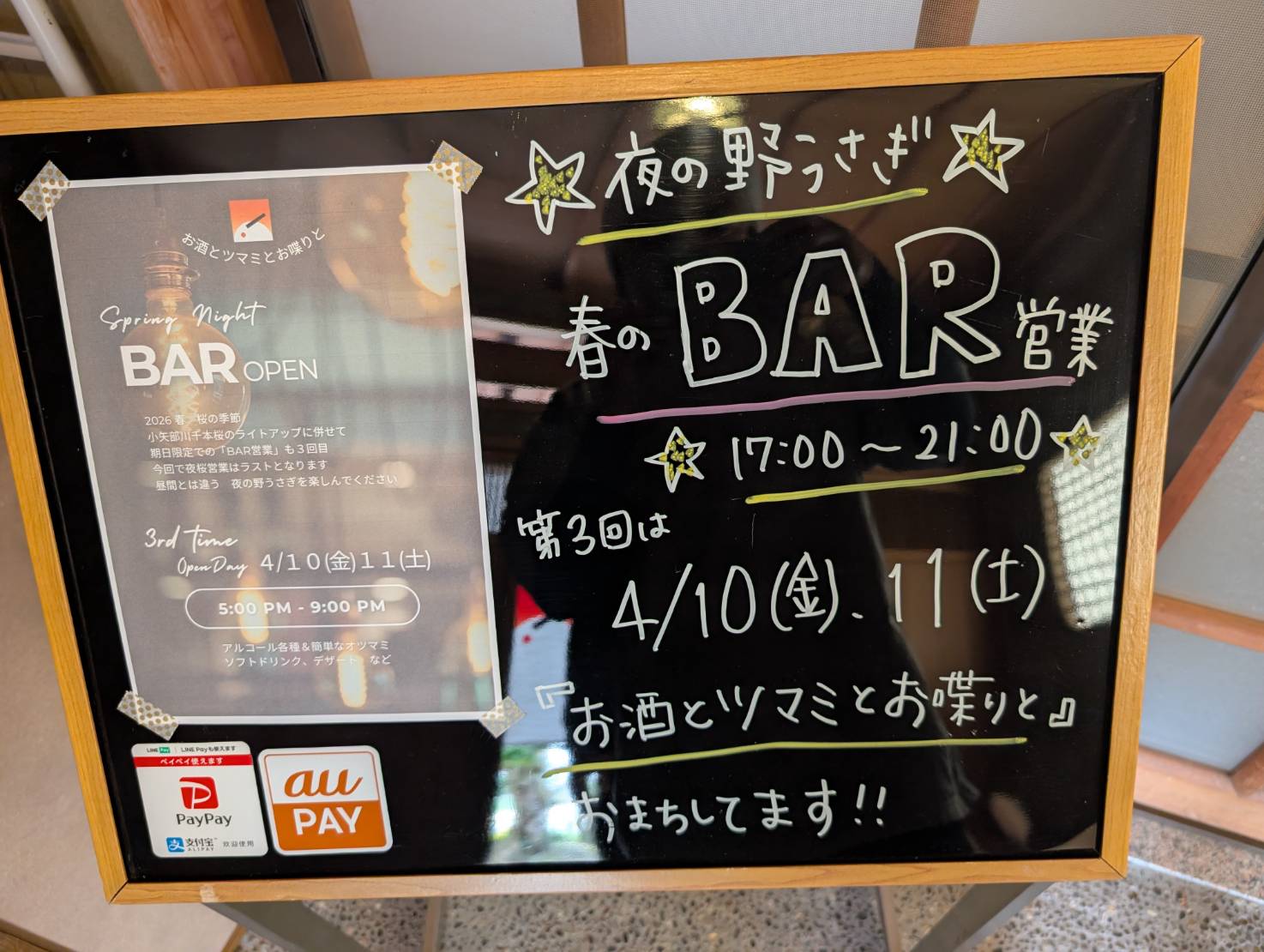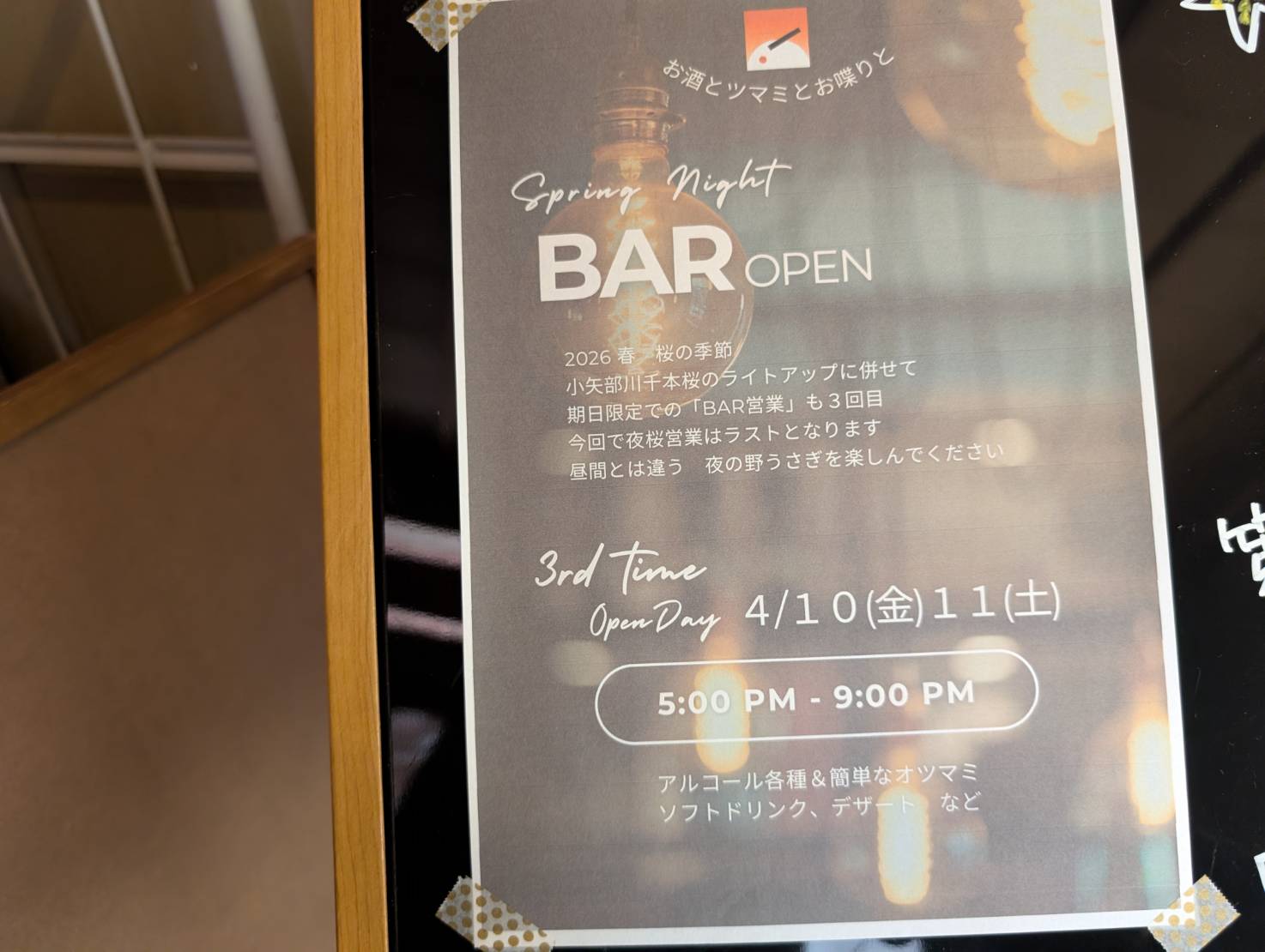 とらうと 行きつけの福光の「茶舎 野うさぎ」が夜桜ライトアップの中、夜営業「春のBAR営業」をされるらしい。
