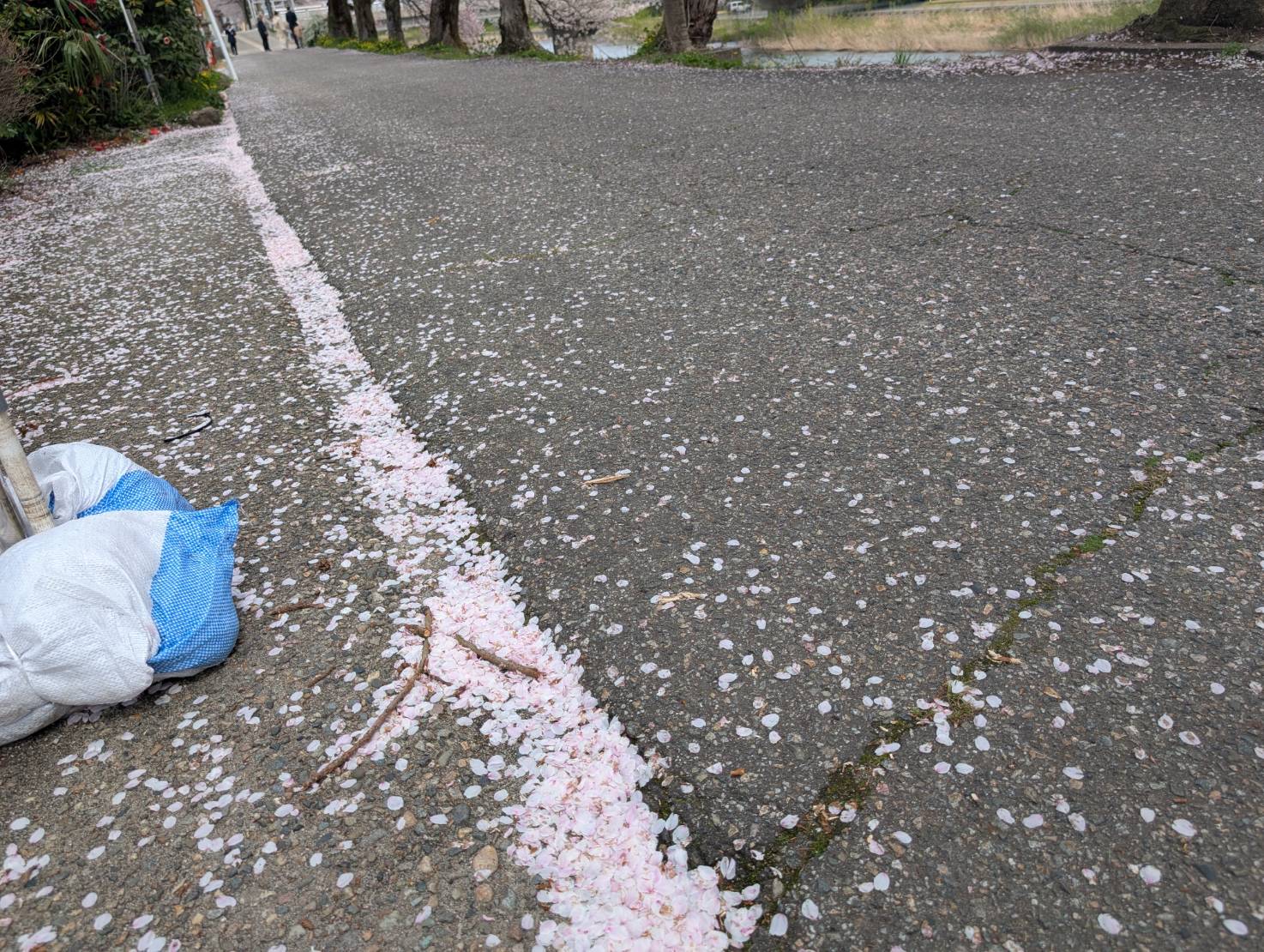小矢部川べりの桜も散り始める中、、、最後のお花見にちょうどいいですね。