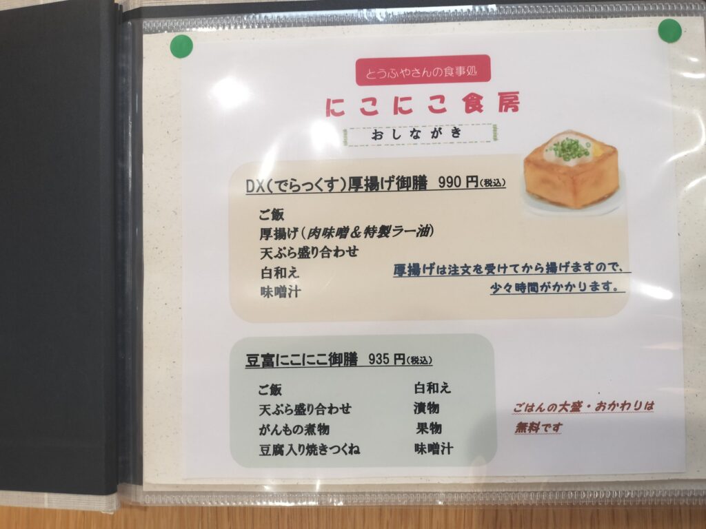 | 店名 | とうふやさんの食卓 にこにこ食房 |
