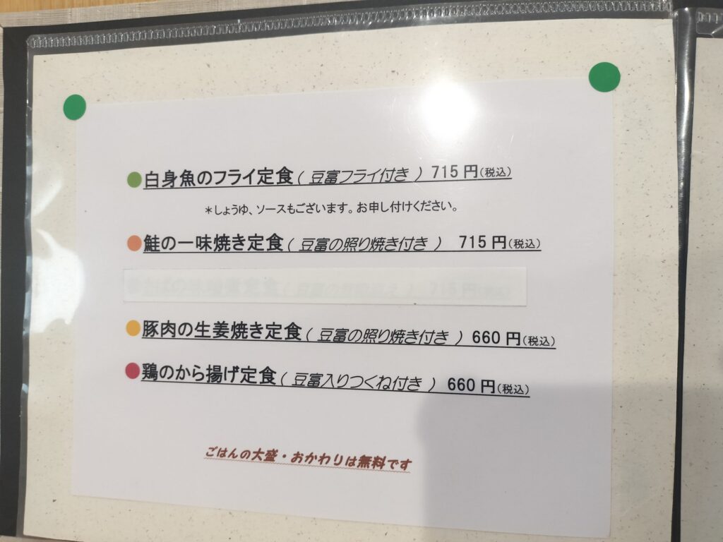 「とうふ屋さん」が手がけるランチと聞くと、ヘルシーだけど少し物足りない?と想像するかもしれませんが、とんでもない!揚げ物や生姜焼きに、ヘルシーな豆腐・おからがバランス良く組み合わされた、まさに「身体に優しく、お腹も心も満たされる」定食のオンパレードでした。