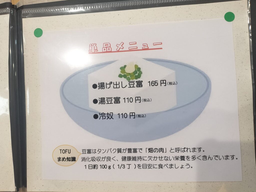 新鮮な豆腐をメインにしたメニューの豊富さと、お手頃な価格帯のお豆腐屋さんのお店です。