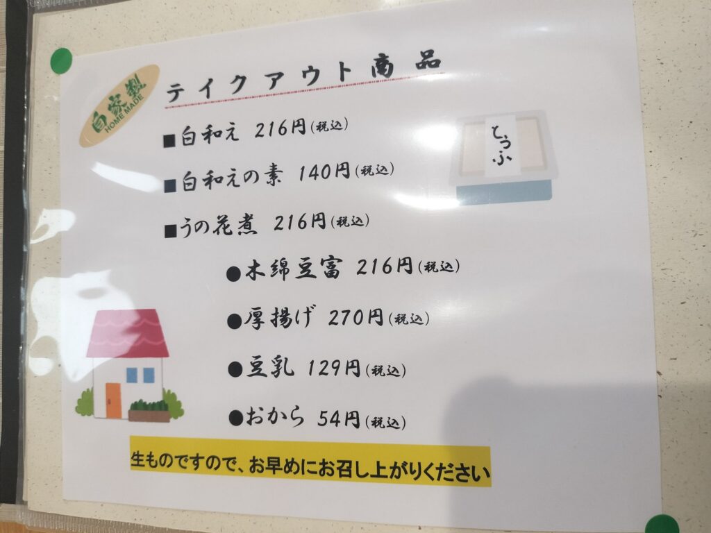 店頭では、白和えの素や生おから(54円・税込)、本綿豆腐といったテイクアウト商品も販売されているので、ぜひご自宅でも豆腐屋さんの味を楽しんでみてください!