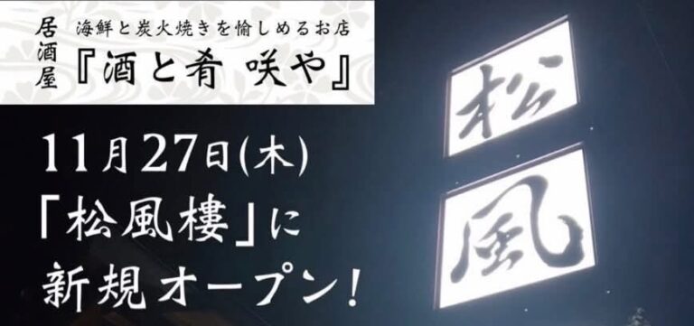 2022年に閉業されていましたが、この度「松風樓 咲や」として、2025年11月27日(木)にリニューアルオープンされます!