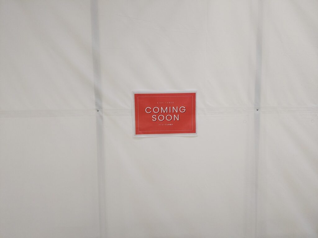 (こんな感じで、「COMING SOON」「リニューアル準備中」の張り紙がしてありました…。)