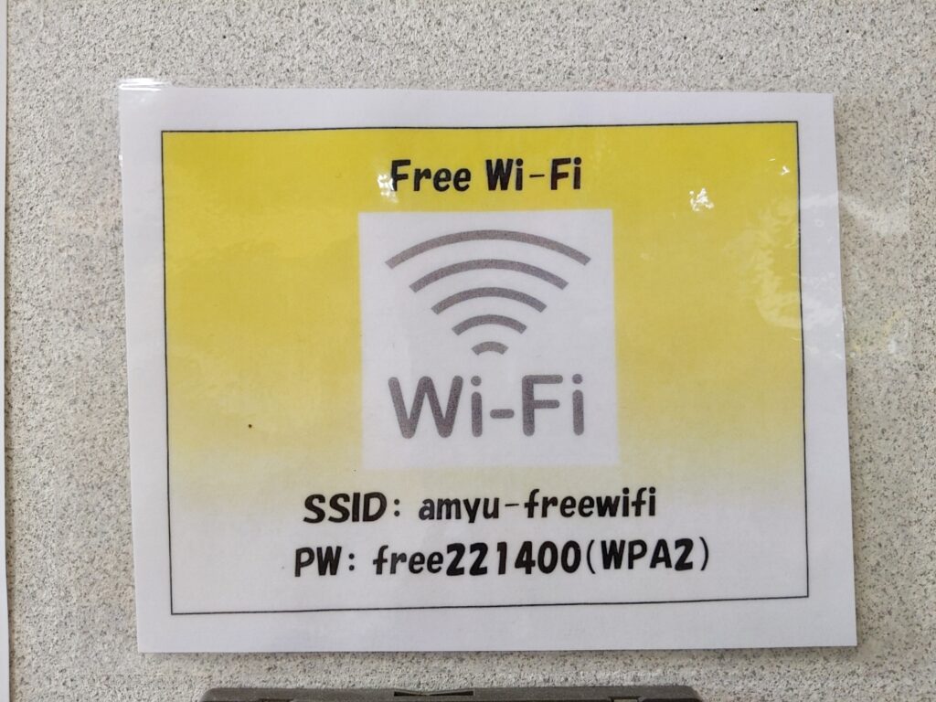 休憩所には、Wi-Fiの案内はなかったんですが、別のところに貼り出されていたものを撮ってきました ^^;