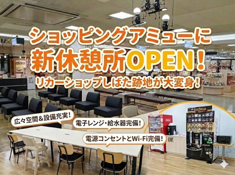 - 場所:ショッピングアミュー内 1階(旧リカーショップしばた跡地)