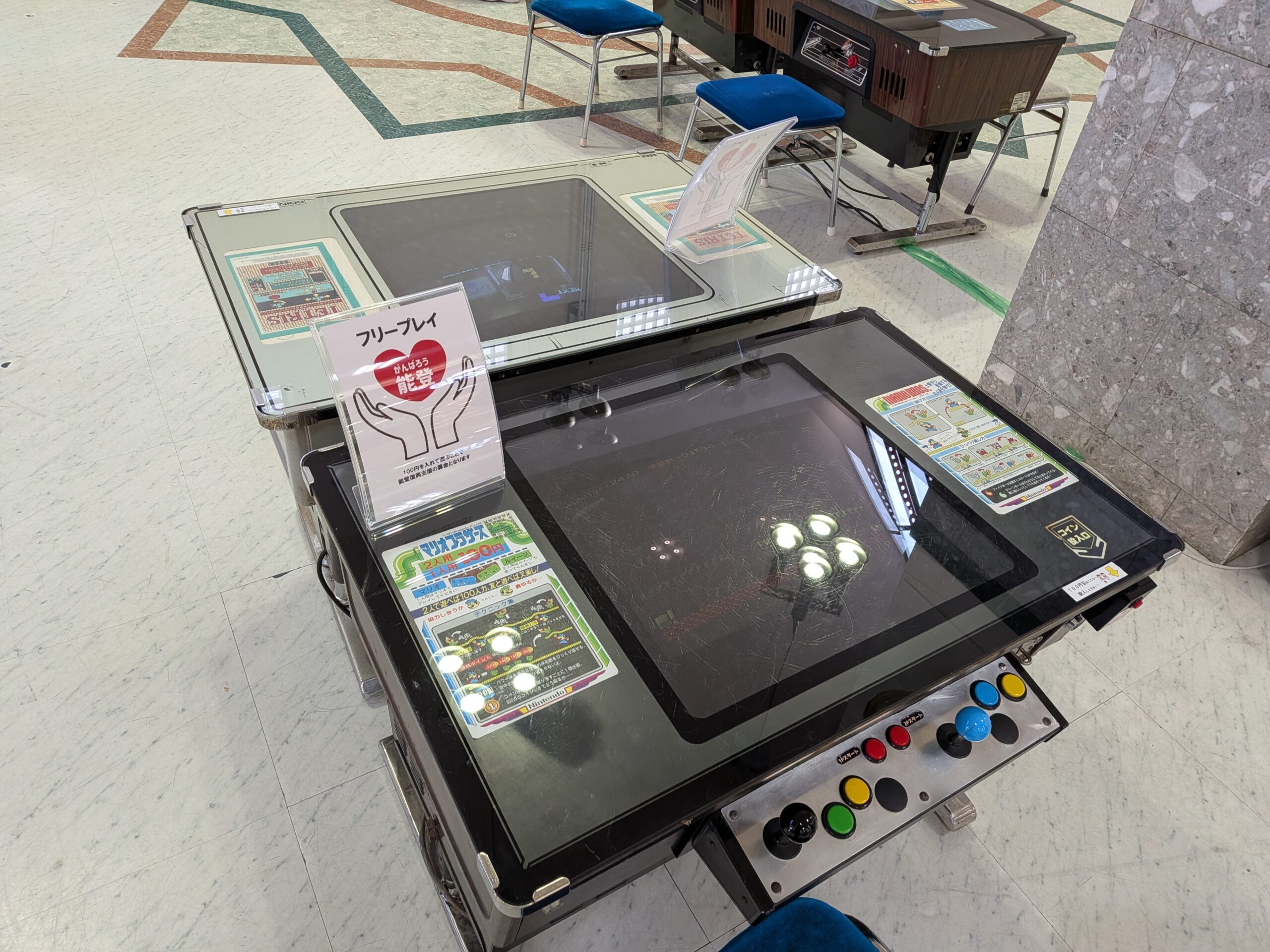 全台無料で遊べますが、100円玉を投入して遊ぶ事で被災地への募金になるという、素晴らしい企画です!