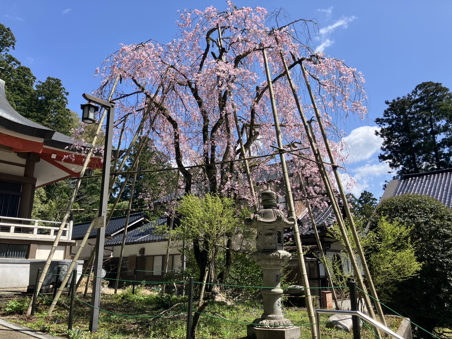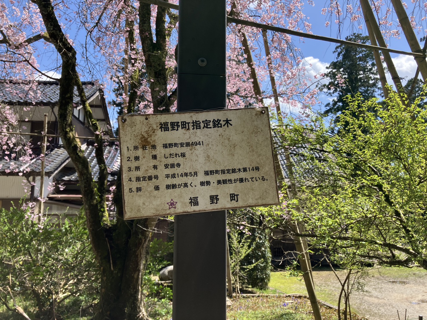 にも選ばれている安居寺のしだれ桜を見てきた。平野部の桜が散った頃に満開になるっぽい。