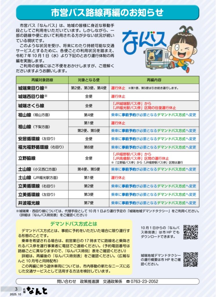 けれども、デマンドバスになる路線はある意味時刻表に縛られずに便利になるのかも?