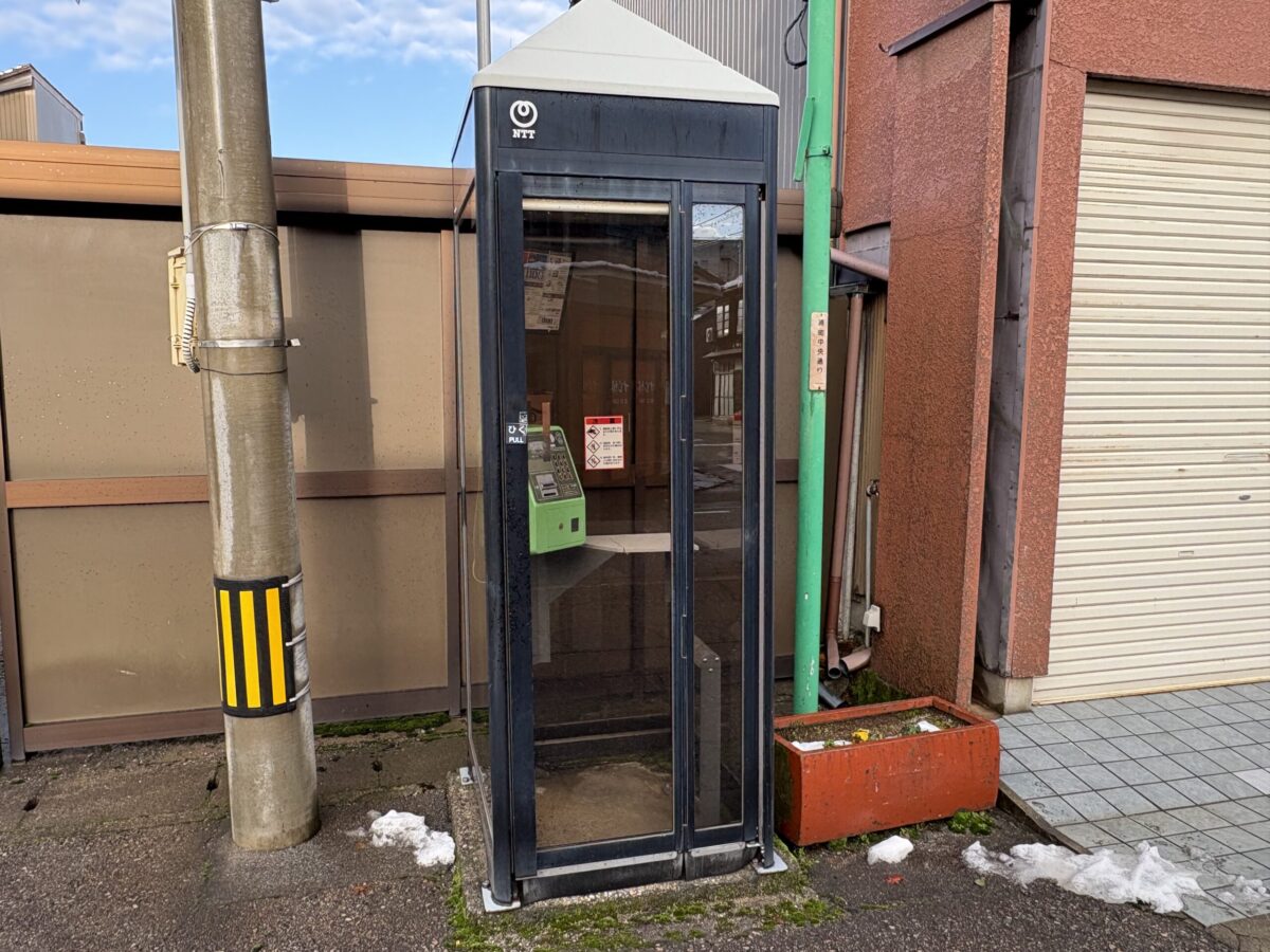 城端線、旧加越線とは関係ないのかもですが、びーやんの通勤路国道471号線の和食・めん処の前にある電話ボックス!